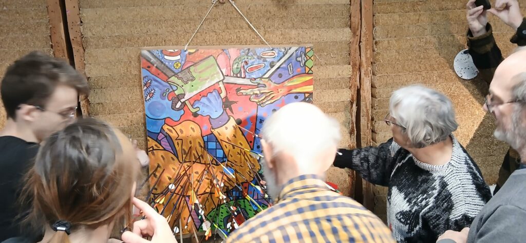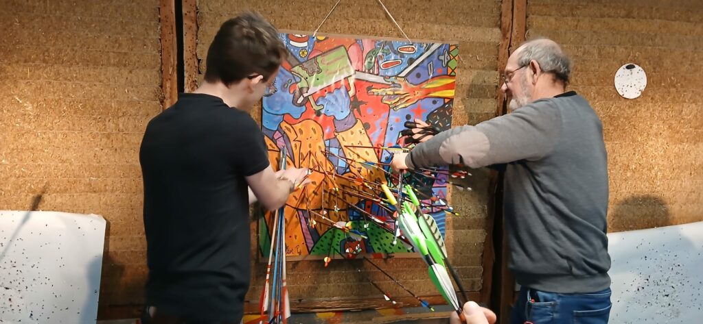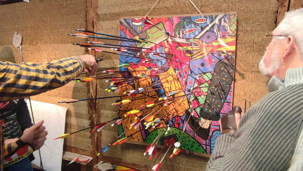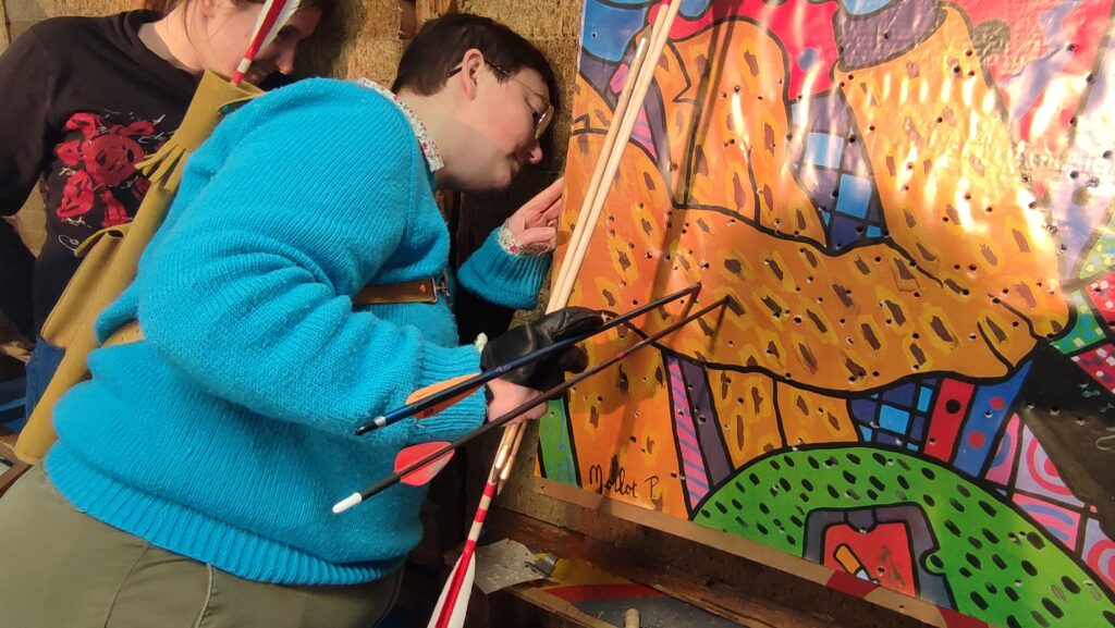 Cette tradition a rassemblé les archers, débutants ou confirmés, autour d’une cible préparée pour l’occasion qui cachait une petit fiole contenant le « sang » de Saint-Sébastien (du sirop de fraise). Le but était de tirer à l’aveugle chacun son tour, sur plusieurs volées de flèches, jusqu’à percer la fiole.
